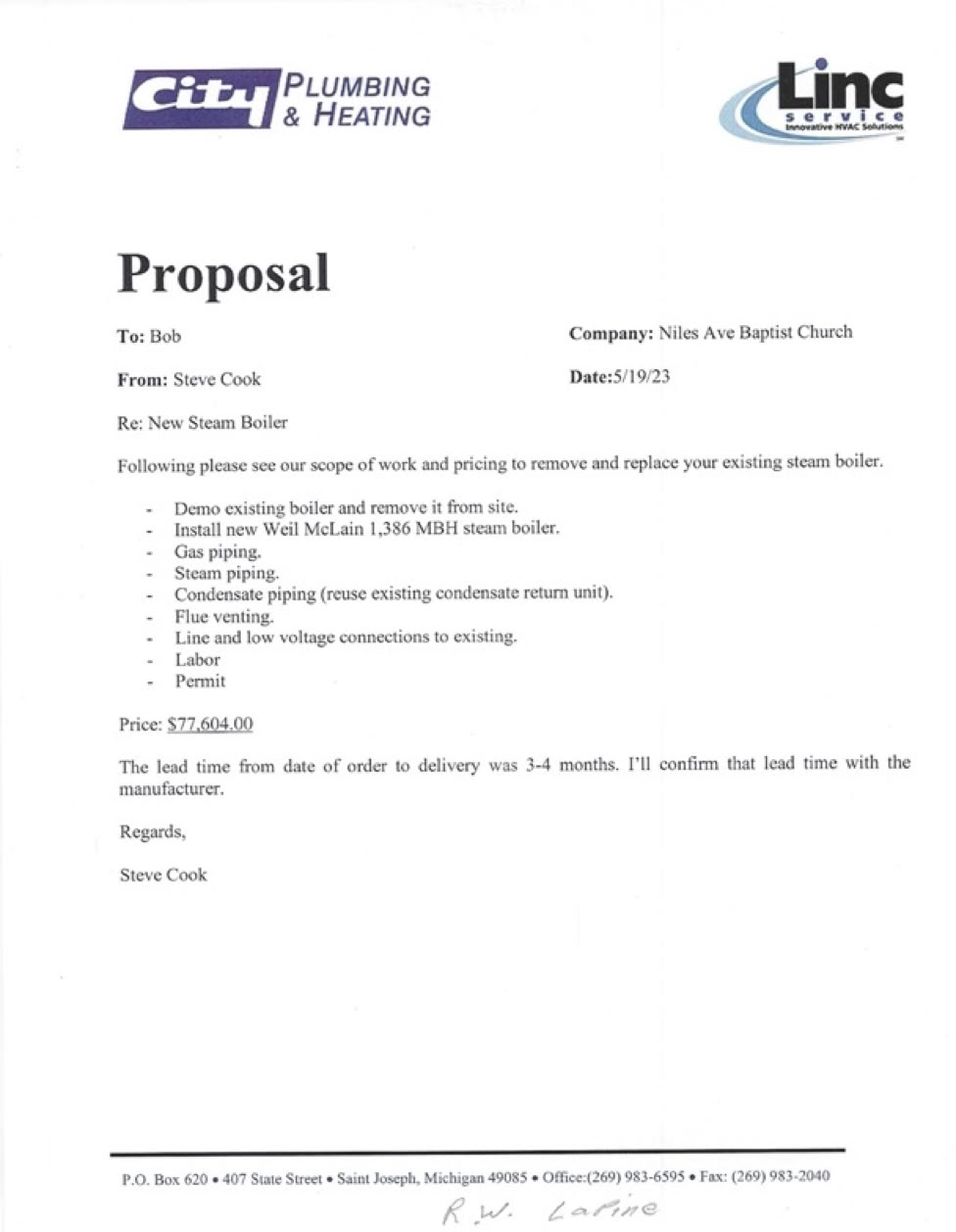 City Plumbing & Heating a local contractor that has been maintaining our boiler for the past 10 years provided an estimate of $77,604.00 to remove and replace our steam boiler. As of the date of this letter and as God has led us, we have raised $13,400.00 from our own giving. As you can see, we are coming up short and need help to replace this boiler. Time is of the essence. We only have warm months from May to September. The rest of the time it is cool or COLD. There is a 3-4 month lead time from the date the boiler is ordered. We are reaching out to the other parts of the body of Christ for love and assistance to help meet this need.